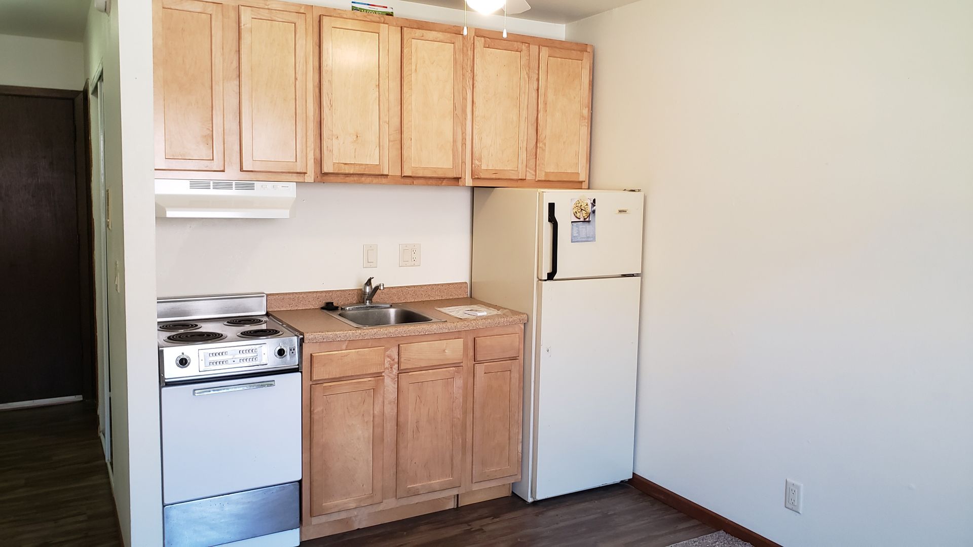 Centrally located Langdon St efficiency with private bathroom and kitchen available August 15th. Full kitchen with garbage disposal and electric stove. Full bathroom with tub. One cat welcome $20/mo. Coin operated laundry in the building. Sorry no off-street parking to offer. Single occupancy, one year lease only.