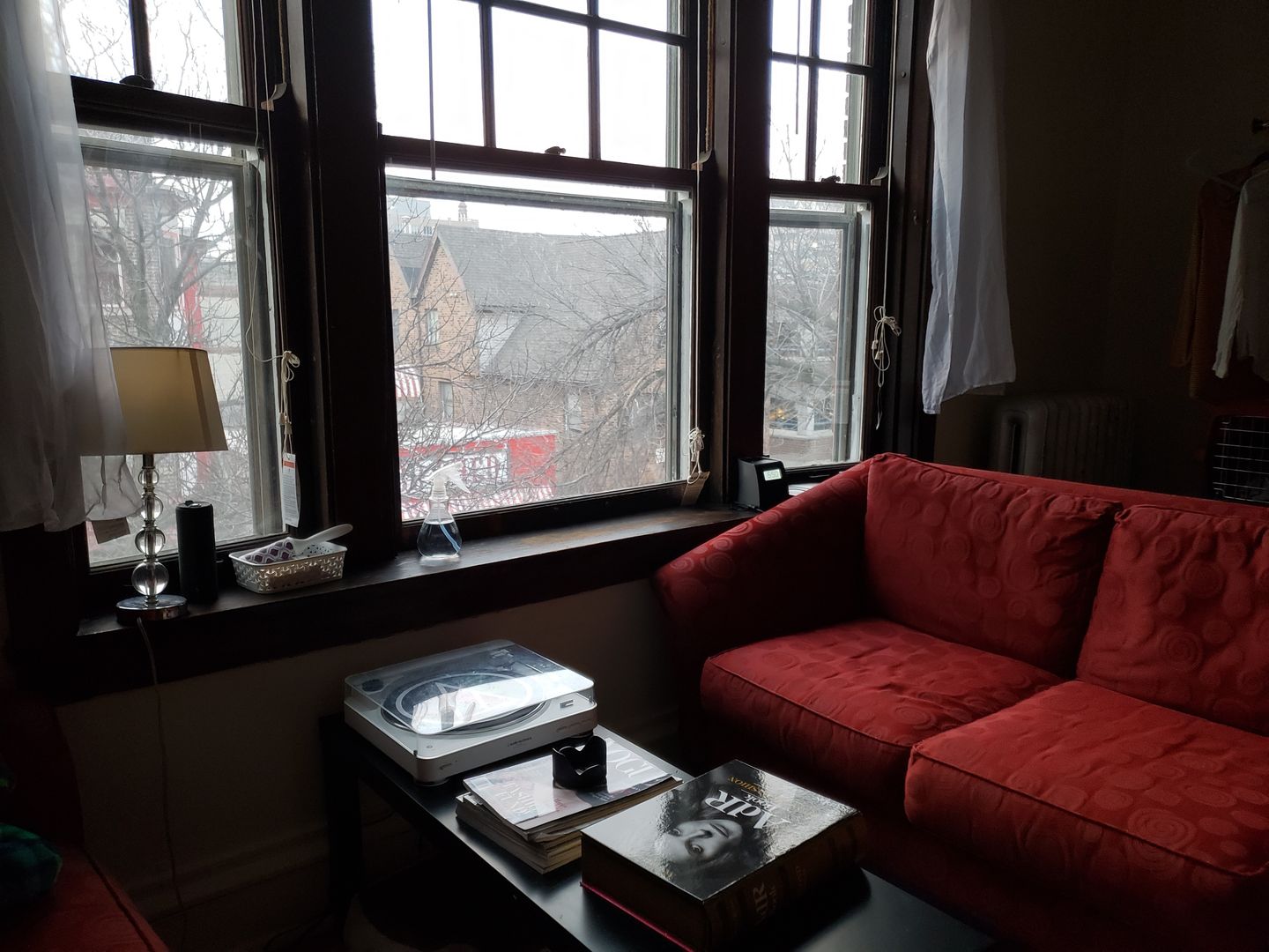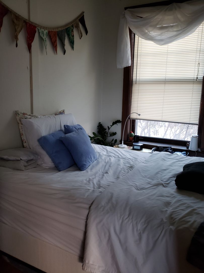 $1,200/mo rent include heat and water. Coin-operated laundry and storage lockers are available on-site. Sorry, no off-street parking available. One cat is welcome for $20/month. Double occupancy allowed.