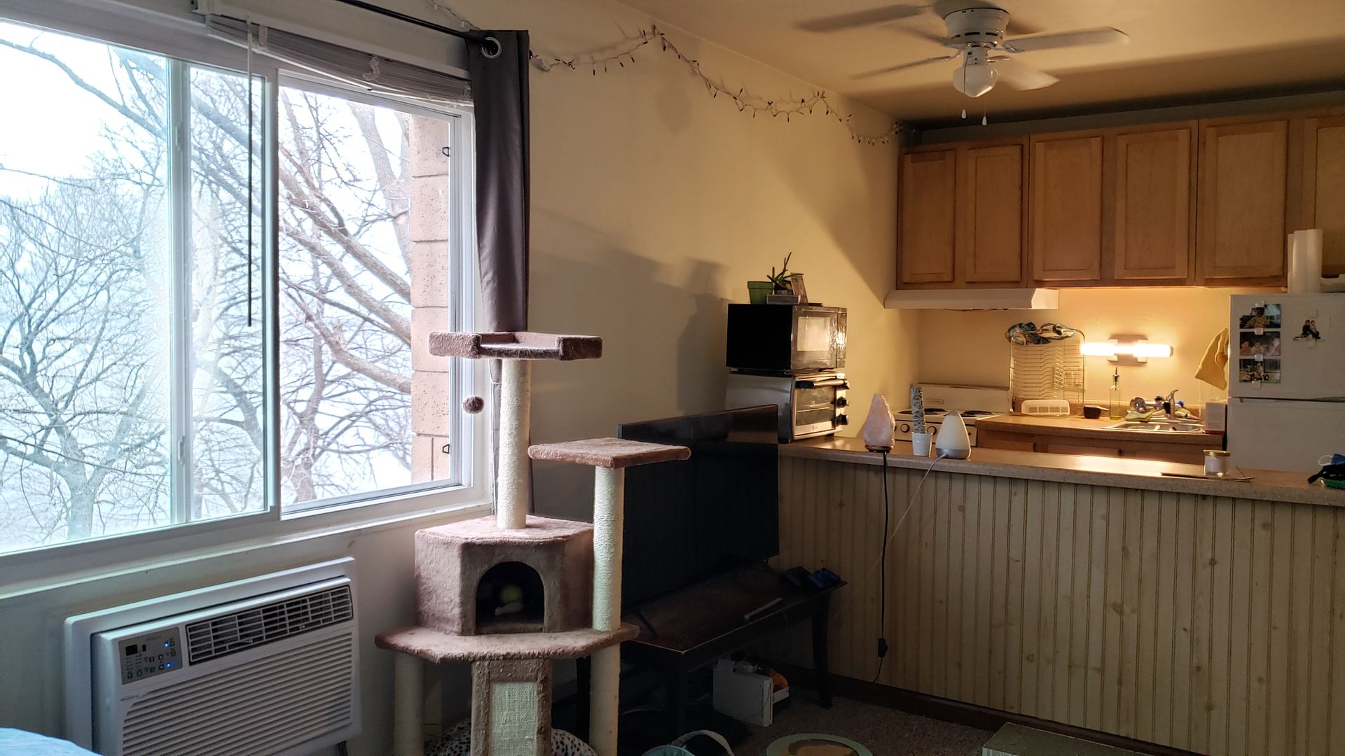Available Aug 15 - Large efficiency with lake view, private kitchen and bathroom, AC $700